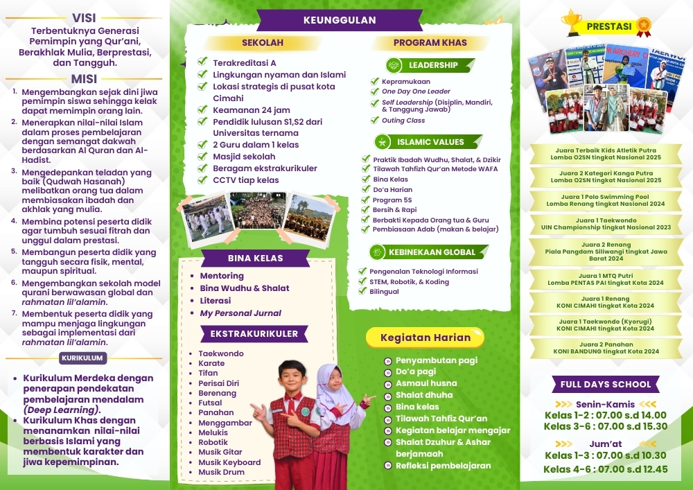 Jangan lewatkan kesempatan untuk bergabung menjadi murid di SD IT Nur Al Rahman. Pendaftaran masih Tersedia. Kuota Terbatas !